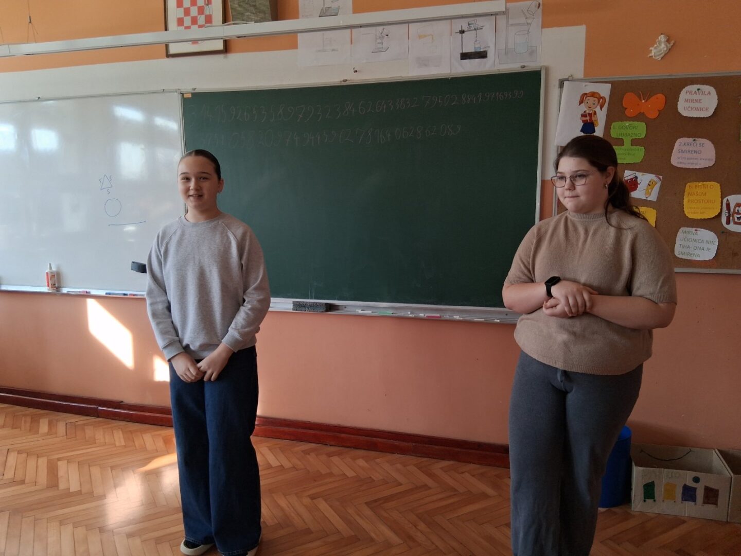 Održano je i natjecanje u recitiranju znamenki broja Pi. Učenica Ivana Bošnjak iz 8. razreda naučila je i prezentirala čak 79 znamenki, učenica 7. razreda Tea Čolić naučila je 57, a Tiffany Jurić, također učenica 7. razreda, naučila je 14 znamenki.
