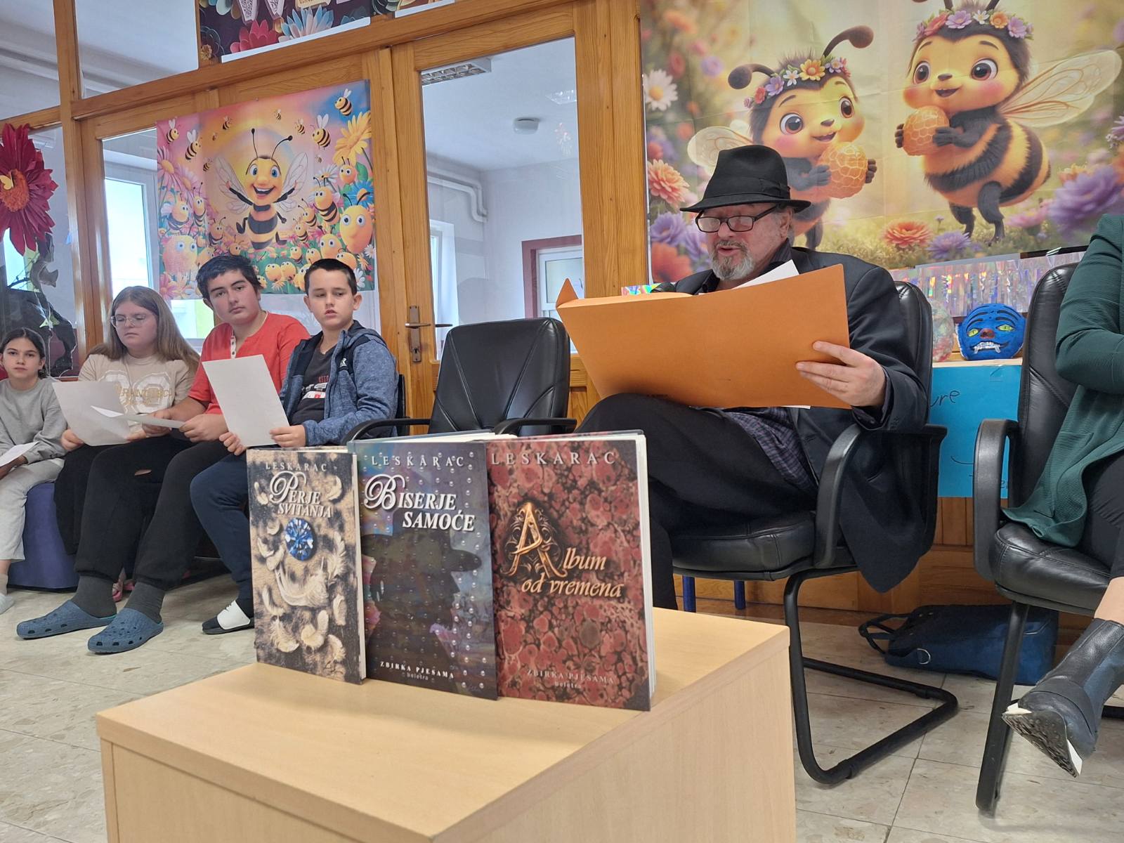 Tijekom susreta, gospodin Leskarac čitao je svoje pjesme učenicima, a učenici su mu se pridružili čitajući njegove stihove s velikim zanimanjem i poštovanjem. Posebno su se istaknuli najmlađi učenici, koji su pokazali iznimnu znatiželju – postavljali su brojna pitanja o njegovom stvaralaštvu, inspiraciji, ali i o životu pjesnika općenito.