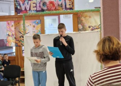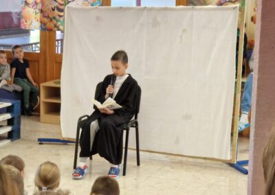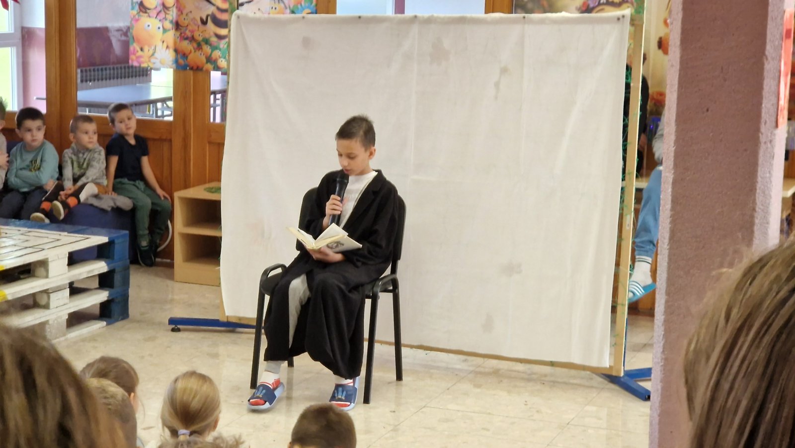 Poseban trenutak bio je nastup učenika petog razreda, Dine Smiljanića, koji je utjelovio Ivu Kozarčanina, književnika po kojem naša škola nosi ime. Njegova izvedba bila je dirljiva i edukativna, podsjetivši nas na važnost kulturne baštine i identiteta.