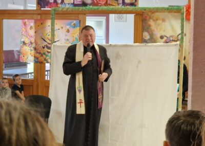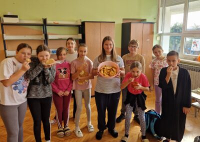 Na samom kraju priredbe, velečasni Josip Jerković je blagoslovio pripremljenu hranu, nakon čega su se učenici uputili u svoje razrede gdje su se počastili raznovrsnim slasticama koje su, zajedno s roditeljima, pripremili za ovaj dan.