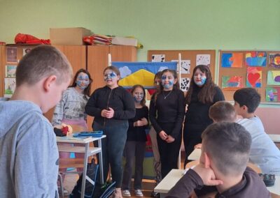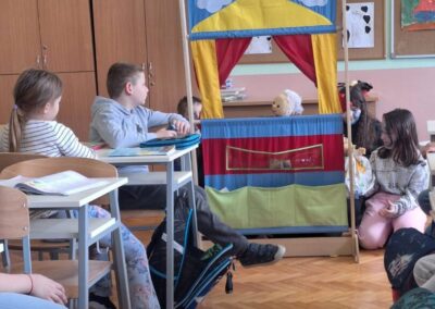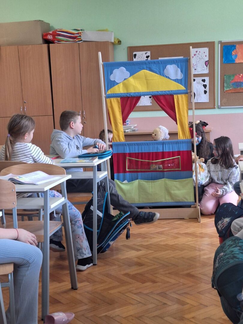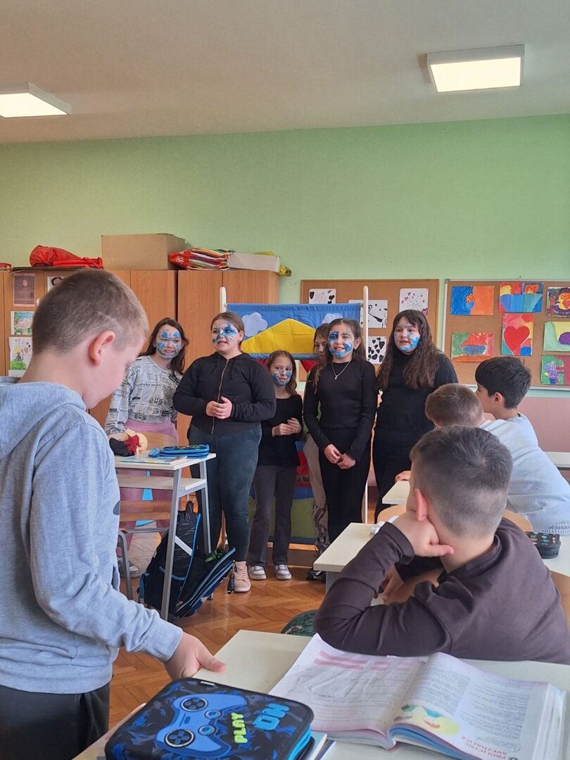 Učenici 2. razreda potom su otvorili vrata svoje učionice kako bi ugostili mlade umjetnike iz Jasenovca. Zajedno su izveli lutkarski igrokaz, pretvorivši učionicu u maleno kazalište puno kreativnosti, šuškanja lutaka i dječjeg uzbuđenja. Za kraj druženja, gosti su nam poklonili još jedan dragocjeni trenutak: otpjevali su himnu svoje škole, ispunivši prostor ozračjem ponosa i pripadnosti.