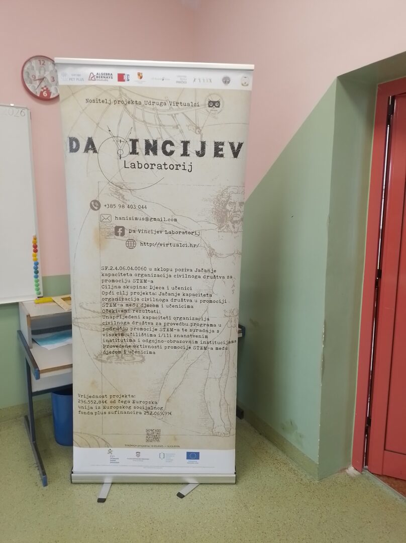 Za učenike 3. i 4. razreda Udruga Virtualci održala je radionicu “Da Vincijev laboratorij – Interaktivno i kreativno putovanje Da Vincijevim izumima”.