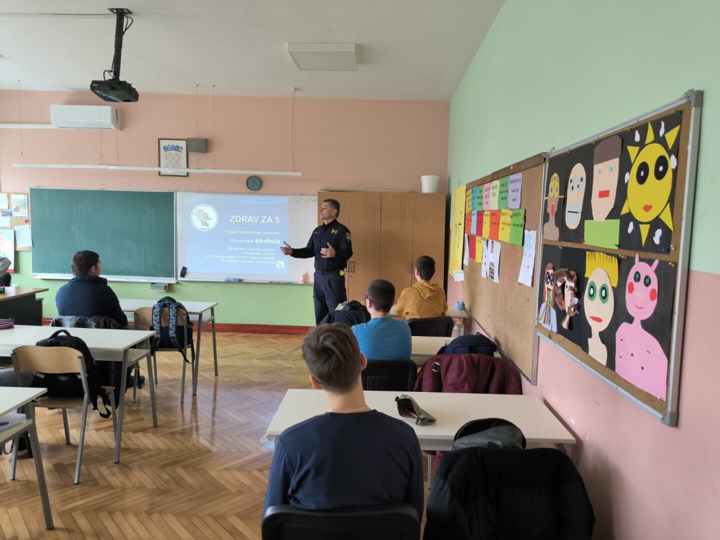 U sklopu navedenog preventivnog programa u petak, 23.siječnja 2026.godine školu je posjetio djelatnik MUP-a Željko Šalković koji je održao radionicu u našem 8.razredu čija je svrha bila pokazati našim učenicima zašto je alkohol štetan, kako se može razviti ovisnost o alkoholu i do kakvih društveno neprihvatljivih ponašanja može dovesti prekomjerna konzumacija alkohola.