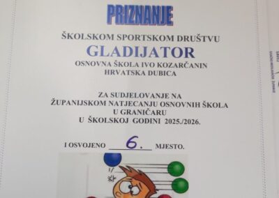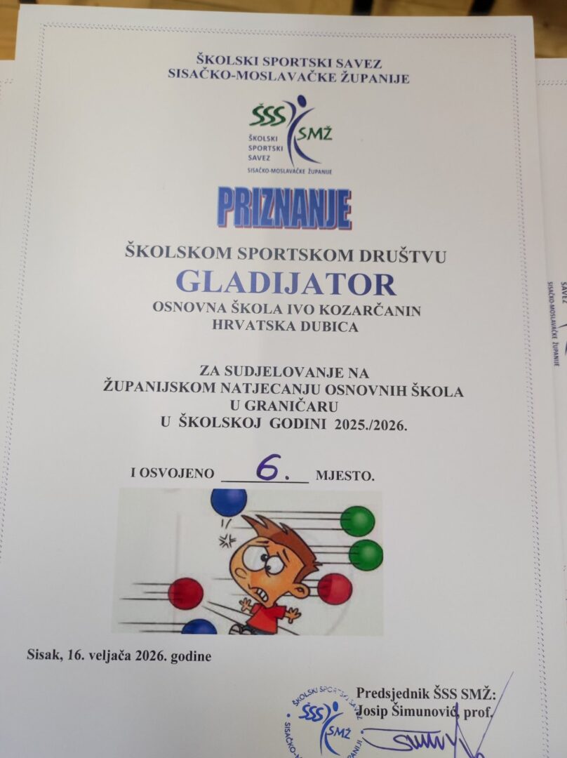 Dana 16. veljače 2026. godine u Sisku je održano županijsko natjecanje u graničaru za dječake i djevojčice do 4. razreda. Organizator natjecanja je Školski sportski savez SMŽ, a sudjelovalo je 6. najboljih školskih sportskih društava naše županije.